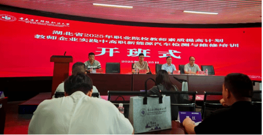 凝心聚力启新程,赋能职教促发展。近日,湖北省2025年高职教师企业实践新能源汽车检测与维修国家级培训在重庆电子科技职业大学致远楼203正式开班。重庆电子科技职业大学党委常委、副校长叶勇,培训与继续教育中心主任莫绍强,项目负责人马良琳,教学班主任邓家彬及本期培训全体学员出席开班仪式。本次培训旨在提升高职教师在新能源汽车检测与维修领域的教学能力和实践水平,为职业教育高质量发展注入新动能。